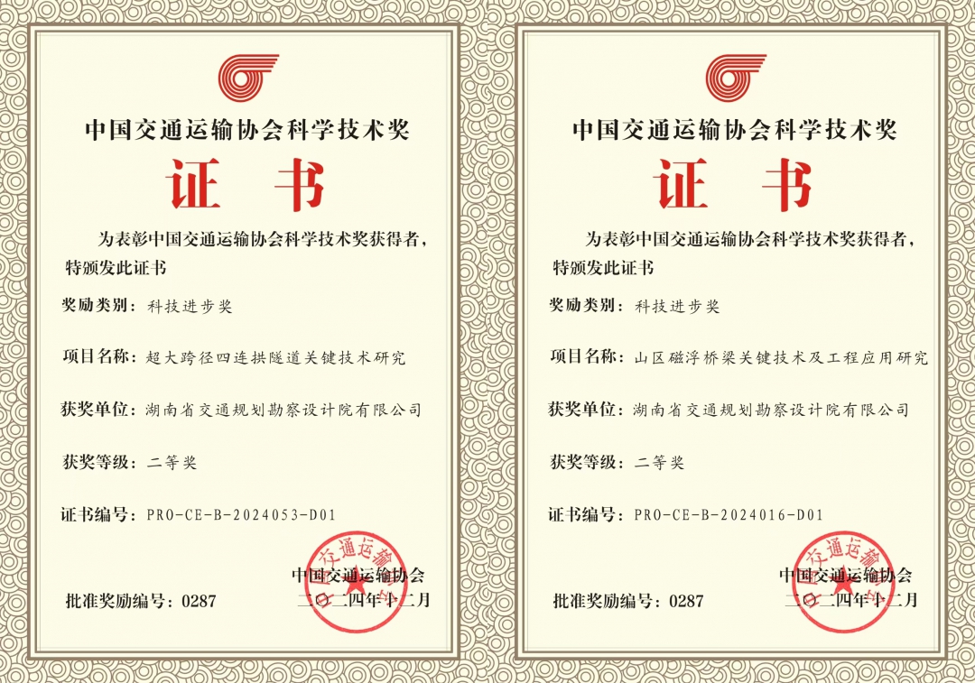 近日,湖南省交通規(guī)劃勘察設(shè)計院有限公司在科技創(chuàng)新與工程創(chuàng)優(yōu)領(lǐng)域捷報頻傳:2項核心技術(shù)成果榮獲2024年度中國交通運輸協(xié)會科技進步二等獎;27項工程勘察設(shè)計成果在湖南省優(yōu)秀工程勘察設(shè)計成果評定中榮獲9項一等獎、8項二等獎、10項三等獎,獲獎數(shù)量與質(zhì)量均創(chuàng)造歷史紀錄,彰顯了行業(yè)...