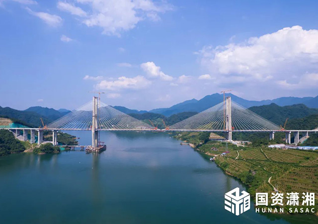 7月7日上午,隨著最后一塊橋面板精準(zhǔn)吊裝到位,雪峰湖大橋成功實(shí)現(xiàn)合龍。這也標(biāo)志著官新高速全線順利貫通,距離今年底通車的目標(biāo)更進(jìn)一步。雪峰湖大橋位于益陽(yáng)市安化縣境內(nèi),橫跨柘溪水庫(kù),全長(zhǎng)1187米,主跨500米,兩個(gè)主塔均采用H形設(shè)計(jì),其中陸上7號(hào)主塔高155 9米,水中6號(hào)主塔高202 4米,為雙塔雙索面半漂浮體系斜拉橋,是湖南省最大跨度鋼混組合梁斜拉橋。