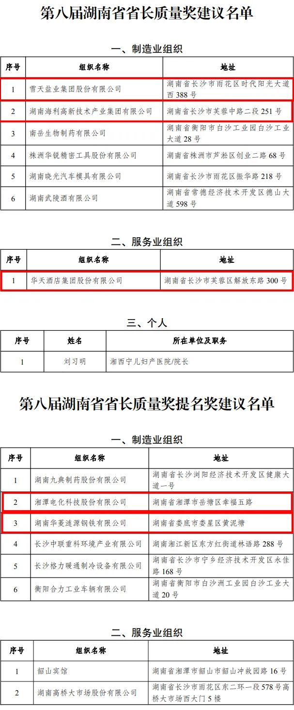 7月14日,湖南省省長質量獎評審委員會辦公室公示第八屆湖南省省長質量獎、提名獎建議名單,經過湖南省省長質量獎評審委員會全體委員審議與投票,7家組織、1名個人入選省長質量獎建議名單,8家組織入選提名獎建議名單。 根據《湖南省省長質量獎管理辦法》(湘政辦發〔2021〕34號)...